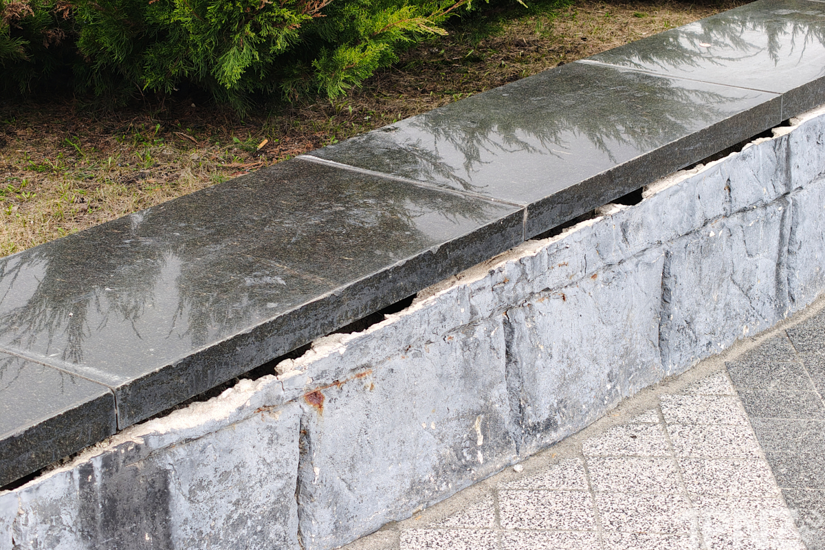 Плитка вокруг газонов дышит на ладан, а её основание крошится.