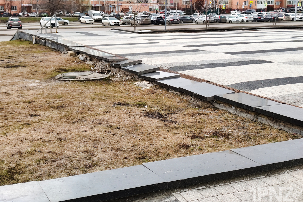 Ливнёвка деформировалась и также нуждается в ремонте. Местами на Юбилейной площади просела тротуарная плитка, и она вся покрыта мелкими лужами.