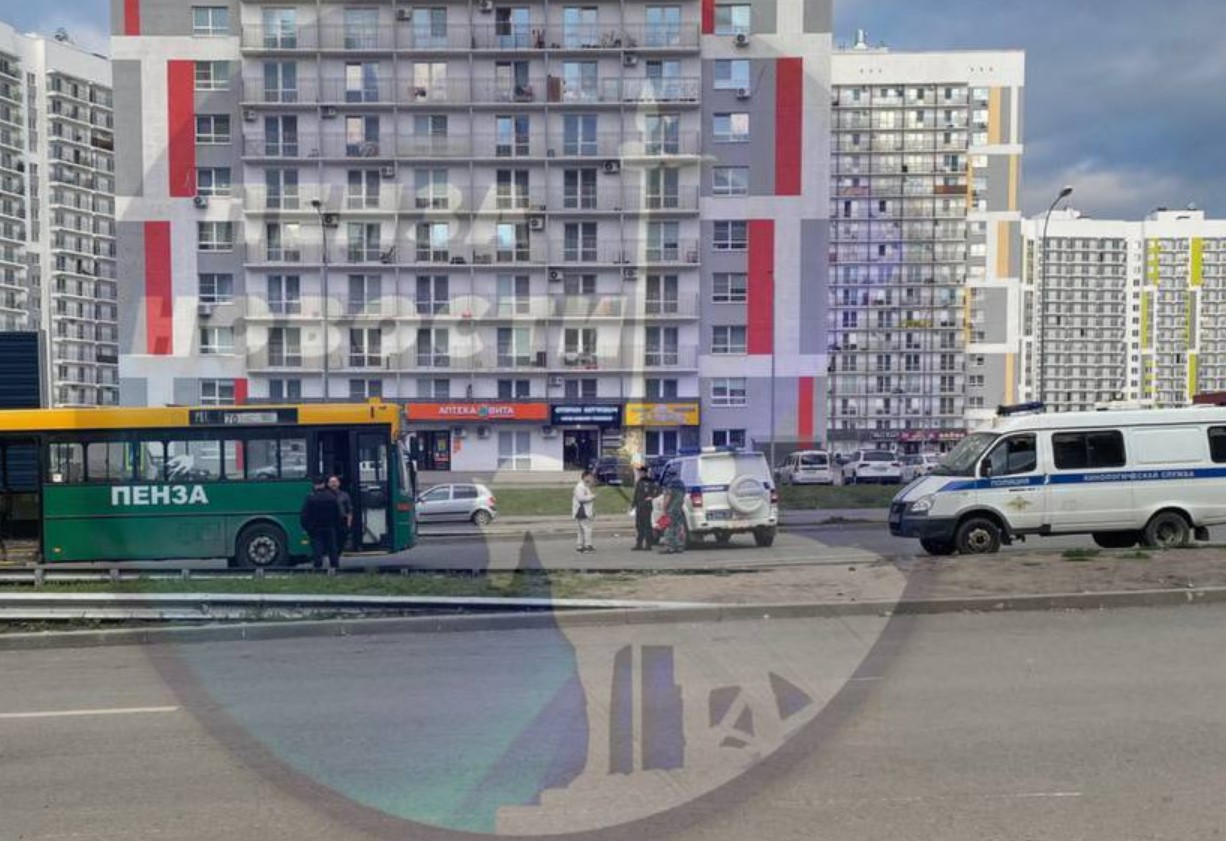 Очевидцы засняли, как полицейские приехали на улицу генерала Глазунова в Пензе и прошли к пассажирскому автобусу.