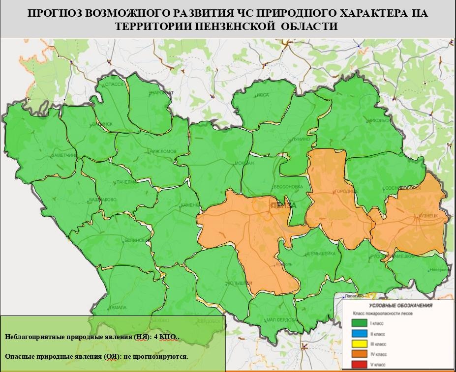 В трех районах Пензенской области прогнозируется четвертый класс пожарной опасности