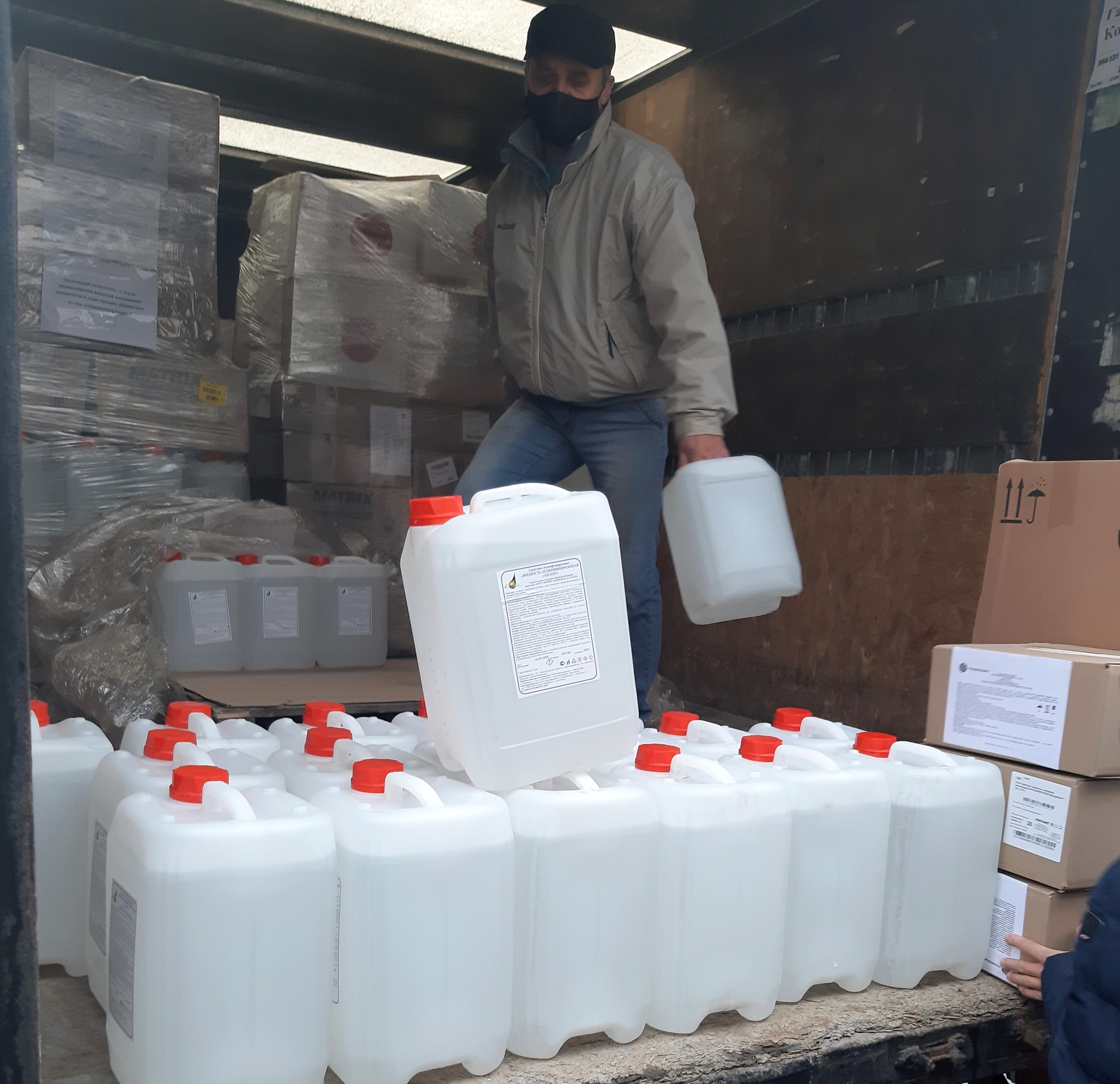Помощь в приобретении и доставке дезинфицирующих средств, защитных костюмов, шапочек, перчаток, респираторов, защитных очков и экранов оказана Акционерным обществом «Корпорация «Росхимзащита».