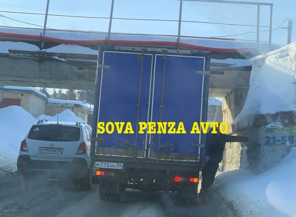 Пензенцы сообщают о пробке из-за застрявшей под мостом ГАЗели