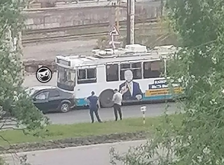 Судя по снимку, троллейбус по каким-то причинам врезался в заднюю часть легковушки. О степени повреждений, полученных транспортными средствами, по фото судить сложно, однако известно, что авария осложнила движение на данном участке пути.