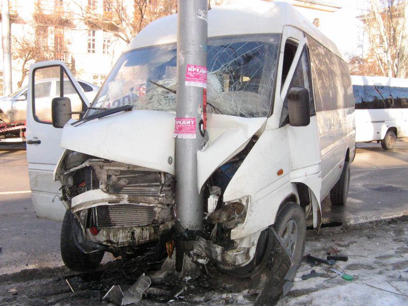 Вчера маршрутное такси № 33 врезалось в фонарный столб. Водитель утверждает, что ехал на минимальной скорости.